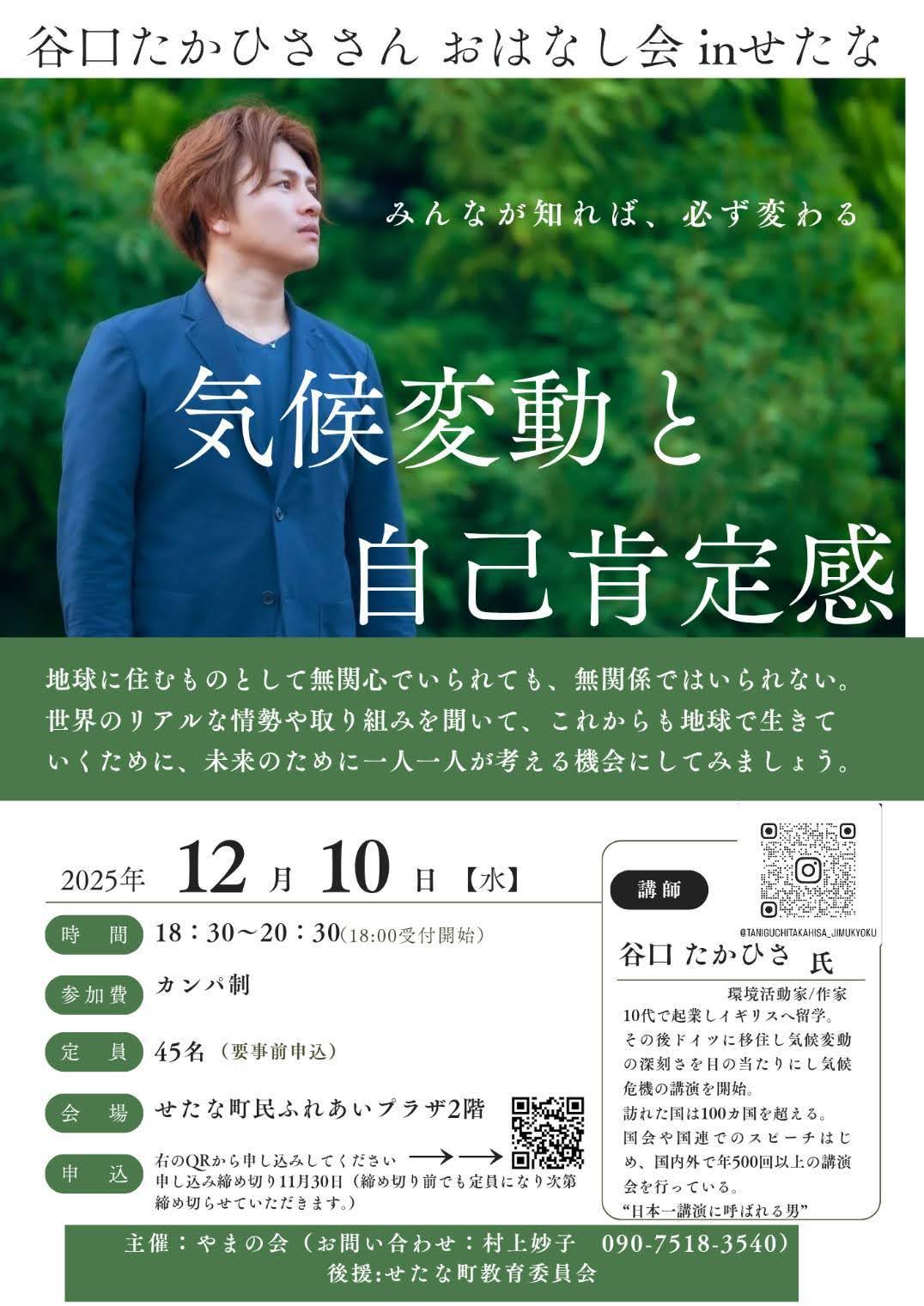MESSAGE. 旅、留学、ビジネス、移住、起業、講演、活動などで、訪れた国は100か国となりました。 そこから得た知識と経験を活かし、気候変動や食の問題、情報の取り方や自己肯定感を中心と した教育に取り組んでいます モットーには『みんなが知れば必ず変わる』『1人の100歩より100人の1歩』