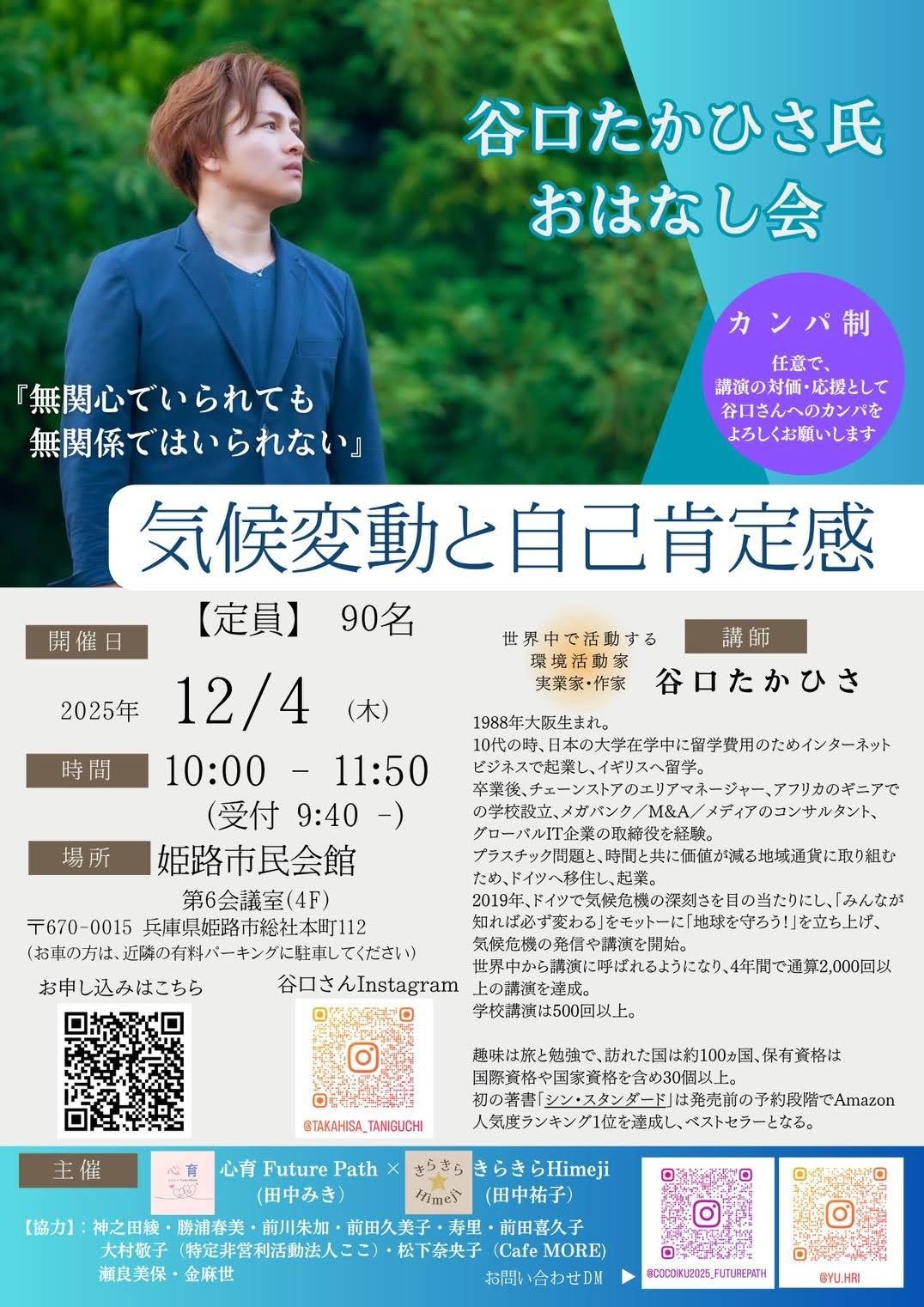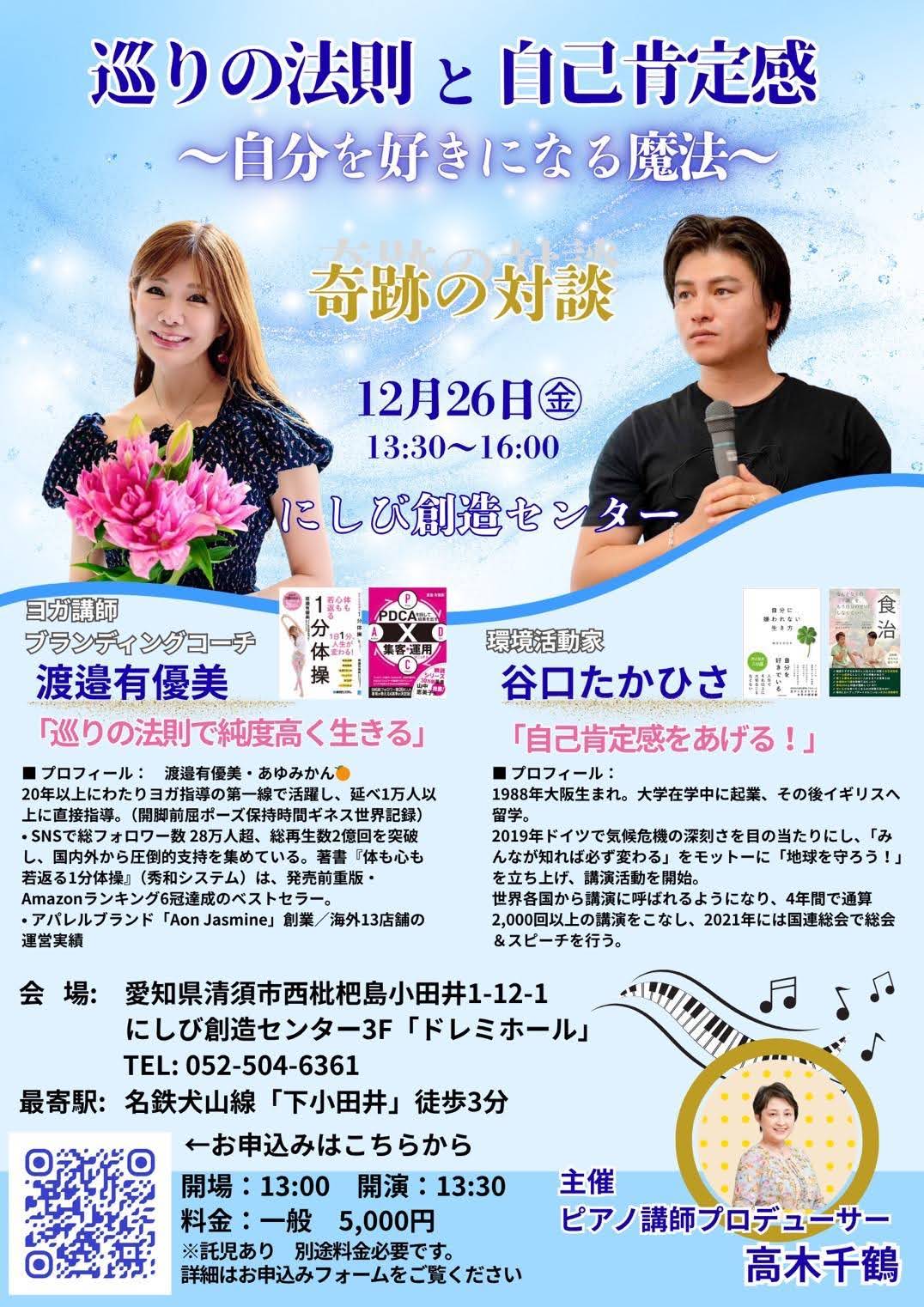 SCHEDULE. 谷口たかひさスケジュール 活動・講演会などのお問い合わせや取材のご依頼 読み込み中... EVENT. イベント・講演会 View All 講演会 近畿 谷口たかひさ お話会@兵庫県姫路市 – 12/4 (木) 2025年12月4日(木) 10:00 - 11:50 姫路市民会館 講演会 中部 谷口たかひさ お話会@愛知県清須市 – 12/26 (金) 2025年12月26日(金) 13:30 - 13:30 にしび創造センター3F「ドレミホール」 講演会 関東 谷口たかひさ お話会@埼玉県北本市 – 1/31 (土) 2026年1月31日(土) 10:00 - 11:30 北本市文化センター [第3会議室] 講演会 北海道 谷口たかひさ お話会@北海道久遠郡せたな町 – 12/10 (水) 2025年12月10日(水) 18:30 - 20:30 せたな町民ふれあいプラザ 2 階 講演会 中部 谷口たかひさ お話会@愛知県北名古屋市 – 11/1 (土) 2025年11月1日(土) 10:00 - 12:00 徳岩寺 講演会 中部 谷口たかひさ お話会@岐阜県高山市 – 12/5 (金) 2025年12月5日(金) 19:00 - 21:00 ウッドフォーラム飛騨